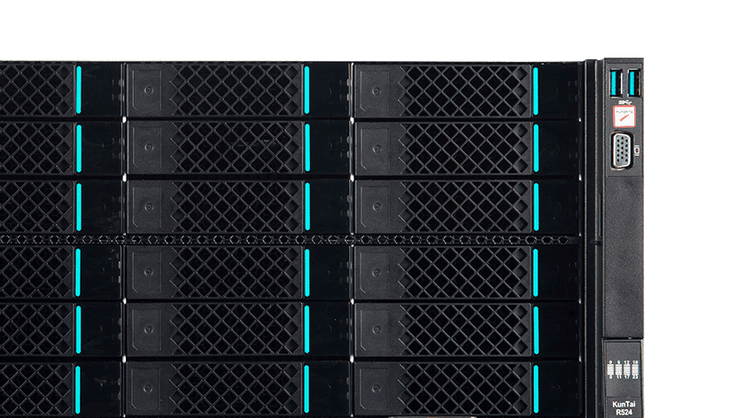 KunTai R524 存储型服务器是好彩客数码基于鲲鹏处理器推出的新一代 ARM数据中心服务器。。。。主要面向存储业务,,,具有海量存储、、、高性能、、低功耗以及易扩展的特点,,适合为大数据分析、、软件定义存 储等应用场景的工作负载进行髙效加速。。