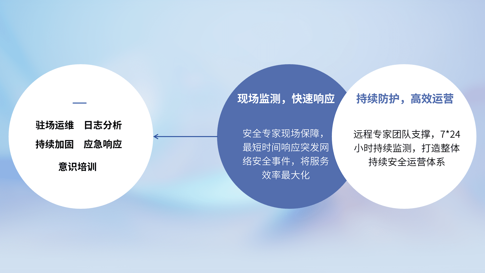 针对客户行业特性,,,提供专属的一站式安全管理服务,,帮助客户全面感知网络空间威胁,,通过安全专家的线上、、线下防护支持,,实现风险闭环,,,,将安全保障常态化,,为客户打造常态化安全运维运营服务。。。
